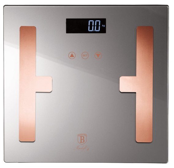 Super płaska waga łazienkowa BERLINGER HAUS z serii MOONLIGHT. Waga z bogatą ilością funkcji dodatkowych takich jak pomiar tłuszczu, wody i masy mięśniowej oraz kostnej w organizmie. Urządzenie wylicza także wskaźnik BMI. Wykonana ze szkła hartowanego i tworzywa sztucznego. Waga o dopuszczalnym maksymalnym obciążeniu 180kg. Wskazania wyświetlane są na dużym ciekłokrystalicznym wyświetlaczu LCD. Model ten cechuje estetyczne wykonanie z wysokiej jakości materiałów.