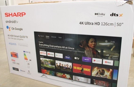 Sharp | 50FP1EA | 50" (126cm) | Smart TV | Android TV | 4K UHD | USZKODZONE OPAKOWANIE, NIEOPAKOWANE, UŻYWANE, ZARYSOWANIA Z BOK