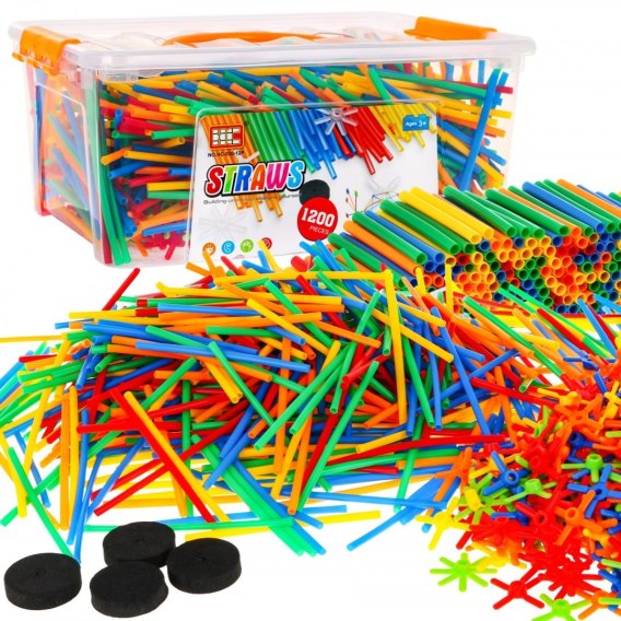 | Duży zestaw klocków - słomek konstrukcyjnych to zabawka dla dzieci od 3 - go roku życia. W zestawie jest aż 1200 elementów, z których Twoja pociecha może zbudować wiele wspaniałych konstrukcji takich jak: wieże, pojazdy, mosty, budynki itp. Patyczki doskonale się ze sobą łączą za pomocą łączników. Są różnokolorowe: zielone, czerwone, niebieskie, pomarańczowe i żółte. Całość zapakowana jest w plastikową skrzyneczkę z uchwytem do przenoszenia. Zabawa słomkami rozwinie wyobraźnię u Twojej pociechy, nauczy kreatywnego i logicznego myślenia. | |