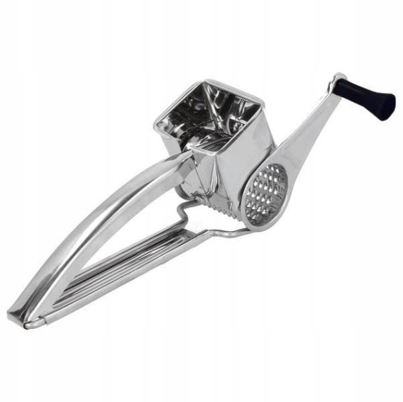 Ręczna, obrotowa tarka do sera wykonana z wysokiej jakości stali nierdzewnej. Mechanizm obrotowy umożliwia w łatwy sposób zestrzeć całą kostkę sera, nie narażając na niebezpieczeństwo skaleczenia palców.