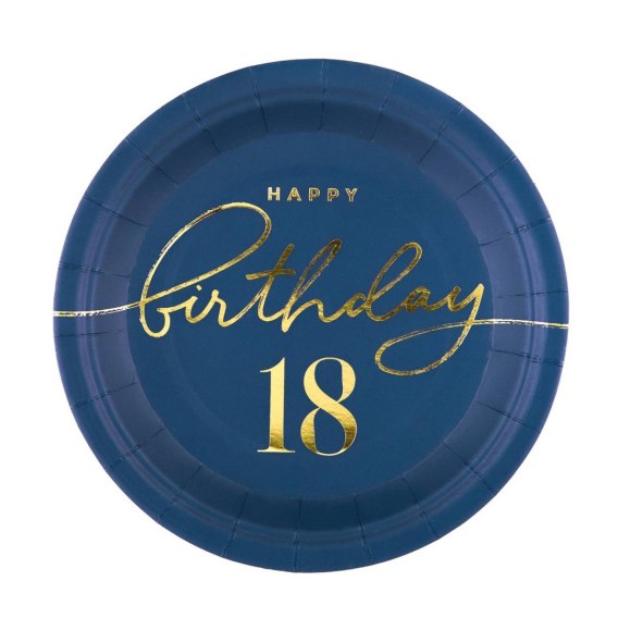 Talerzyk papierowy Happy Birthday 18, granatowy 18cm 6szt.