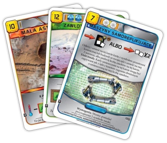 W zestawie 3 karty: zawłotnia śnieżna, maszyny samoreplikujące, mała asteroida.