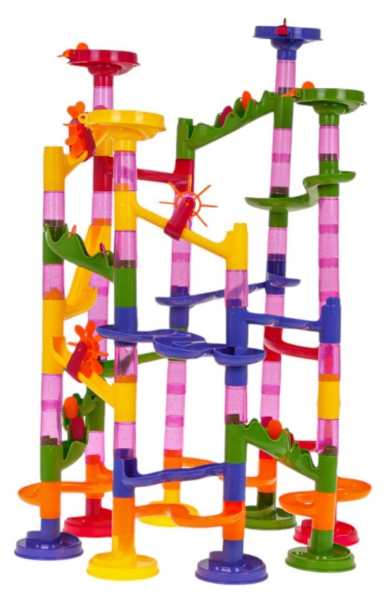 Kolorowy, wytrzymały, tor z kuleczkami dla dzieci od 3 - go roku życia, ale z pewnością wzbudzi zainteresowanie również starszych dzieci. Gra polega na samodzielnym zbudowaniu konstrukcji toru, a potem puszczaniu piłeczek tunelami. Można wzorować się na instrukcji obrazkowej, znajdującej się w zestawie lub stworzyć swoją własną wieżę. Puszczanie w ruch kuleczek i obserwowania jak pokonuje kręte tunele, daje mnóstwo radości, uspokaja i wycisza. Zabawka pozytywnie wpływa na rozwój kreatywności, wyobraźni i zdolności manualnych. Funkcje zestawu: - odpowiedni dla dzieci powyżej 3-go roku życia, - złożony z 105 elementów, - znakomicie wykonany w żywych kolorach, - stabilna konstrukcja, - rozwija koordynację ręka-oko, - uczy spostrzegawczości, - uczy kreatywnej zabawy. |