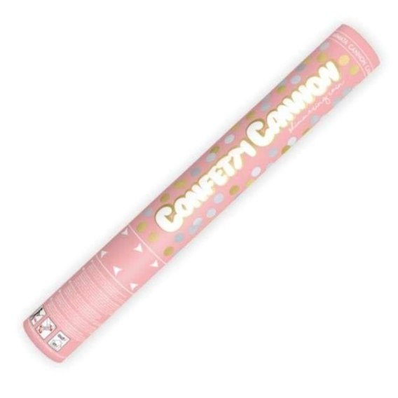 Tuba strzelająca metalicznymi dwustronnymi kółkami w kolorze srebrnym z jednej strony i złotym z drugiej strony, długość 40 centymetrów.