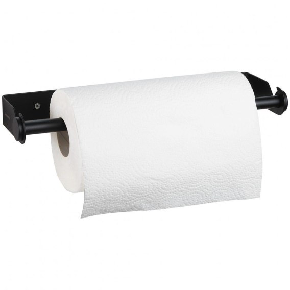 Elegancki uchwyt na ręcznik lub folię, z możliwością przyklejenia do powierzchni lub montażu na śrubki.