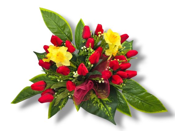 WIOSENNY STROIK NA CMENTARZ KWIATY NA GRÓB POMNIK MISA Z OBCIĄŻENIEM TULIPANY ŻONKILE