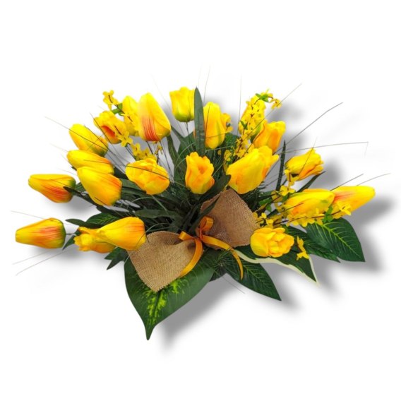 WIOSENNY STROIK NA CMENTARZ KWIATY NA GRÓB POMNIK Z OBCIĄŻENIEM TULIPANY