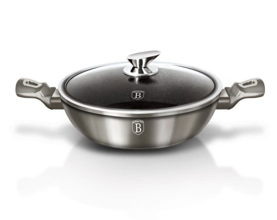 WOK GARNEK Z POWŁOKĄ GRANITOWĄ 28cm 3.8L BERLINGER HAUS METALLIC LINE CARBON BH-1241-N