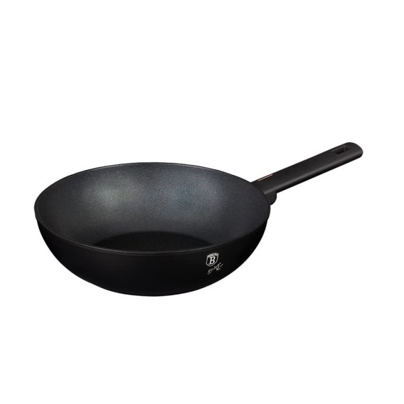 Wok o średnicy 28cm marki BERLINGER HAUS z serii MONACO, naczynia z tej serii wykonane są z wysokiej klasy kutego aluminium pokrytego wewnątrz powłoką tytanową o bardzo wysokim współczynniku twardości. Powłoka zewnętrzna w kolorze czarnym matowym. Te atrakcyjne i modne naczynia wyposażone są standardowo w uchwyty typu SOFT TOUCH (silikonowy uchwyt) oraz są przystosowane do wszystkich rodzajów kuchenek: gazowa, elektryczna, ceramiczna, halogenowa, indukcyjna.