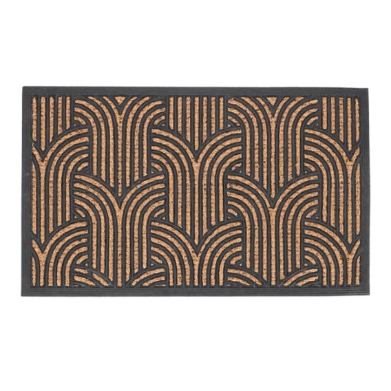 Nowoczesna wycieraczka z Włókna Kokosowego o wymiarach 75,5 x 45,5 cm, która jest nie tylko wytrzymałą i skuteczną w usuwaniu zabrudzeń z butów, ale również stanowi stylowy element dekoracyjny.