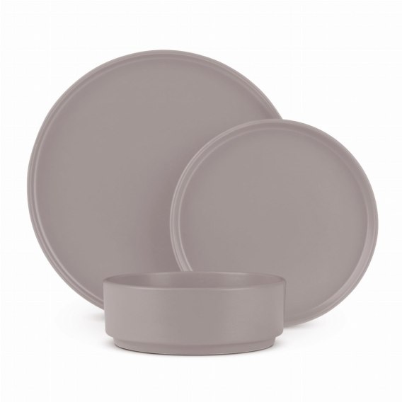 ZASTAWA STOŁOWA SERWIS KOMPLET TALERZY NACZYŃ 18 ELE DLA 6 OSÓB BERLINGER HAUS TAUPE BH-10006