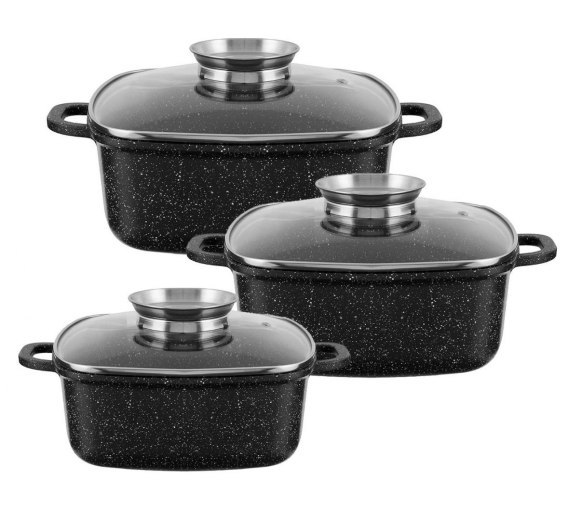 Komplet 3 garnków kwadratowych (brytfann) FRICO/ EDENBERG pokrytych granitową powłoką nieprzywierającą.