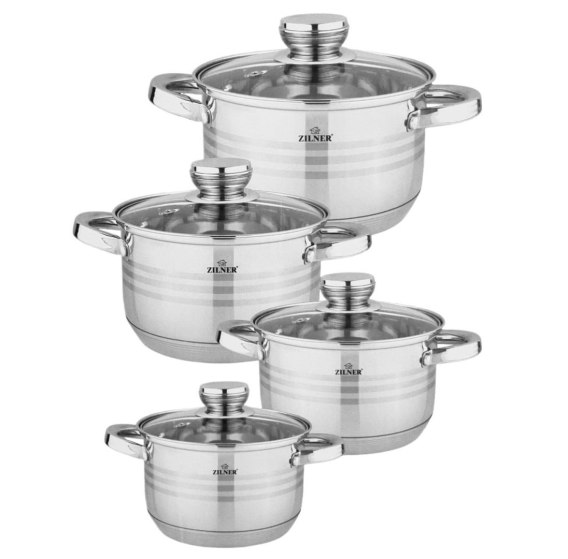 ZESTAW 4 GARNKÓW STALOWYCH 8 EL. 2.1 / 2.9 / 3.9 / 6.6L ZILNER ZL-8071