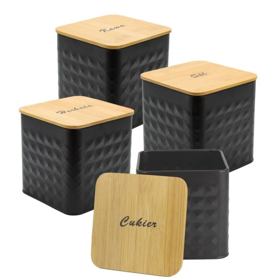 ZESTAW 4 POJEMNIKÓW KAWA HERBATA CUKIER SÓL BRUNBESTE BB-4261 (NAPISY PL)