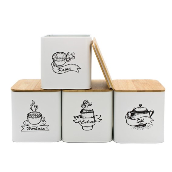 ZESTAW 4 POJEMNIKÓW KAWA HERBATA CUKIER SÓL BRUNBESTE BB-4264 (NAPISY PL)