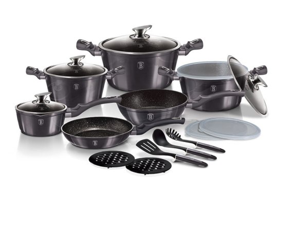 18-elementowy zestaw garnków BERLINGER HAUS z serii CARBON PRO