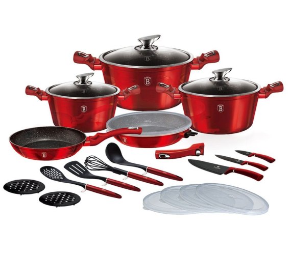 22-elementowy zestaw garnków BERLINGER HAUS z serii METALLIC LINE -BURGUNDY