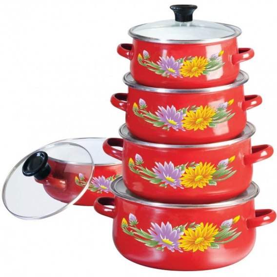 Zestaw garnków emaliowanych, 10 elementów, firmy KLAUSBERG. Akutermiczne, wysokiej jakości dno, które świetnie zatrzymuje i rozprowadza ciepło. Dzięki temu żywność nagrzewa się szybko a ciepło jest dobrze magazynowane. Garnki nadają się do wszelkich źródeł ogrzewania: kuchenki elektryczne, gazowe, ceramiczne i halogenowe (z wyjątkiem indukcyjnych). Oferowany komplet garnków to gwarancja zdrowego przygotowania jedzenia. Gotowanie w niewielkiej ilości wody, smażenie z oszczędnym użyciem tłuszczu minimalizuje utratę witamin, minerałów i smaku!