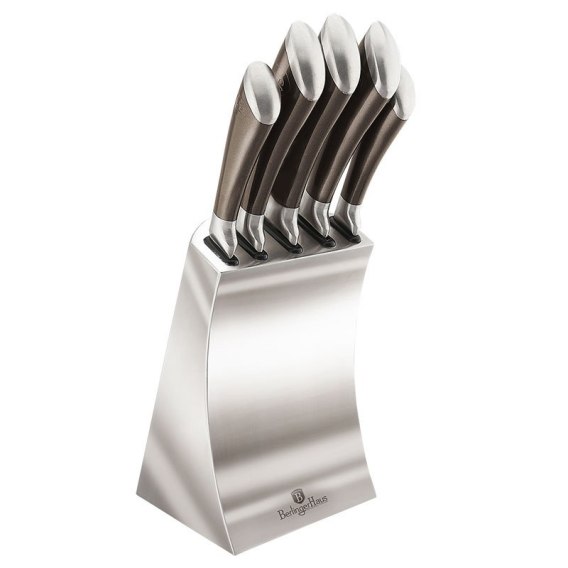 6 elementowy zestaw noży na stojaku ze stali szlachetnej firmy BERLINGER HAUS z serii PASSION (METALLIC CARBON).
