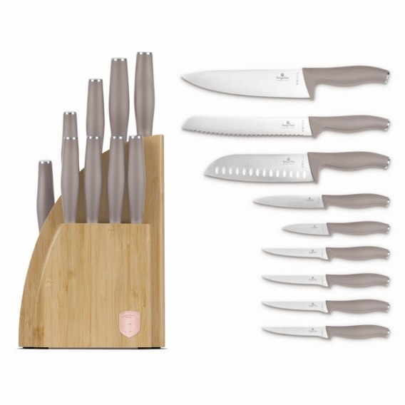 10 elementowy zestaw noży w bloku bambusowym marki BERLINGER HAUS z serii Taupe.