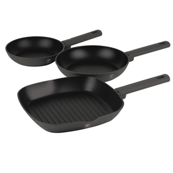 Komplet patelni z nieprzywierającą powłoką tytanową 20, 24 i 28x28cm marki BERLINGER HAUS z kolekcji Antracit.