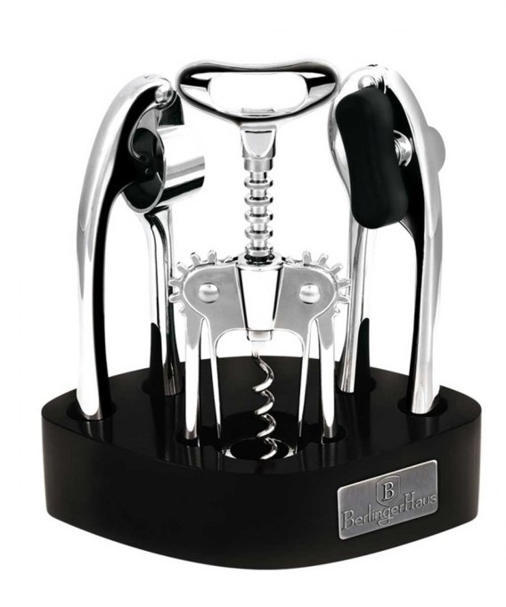 Zestaw 4 przyborów kuchennych na stojaku firmy BERLINGER HAUS z serii Black Silver Collection