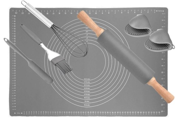 Podstawą zestawu jest silikonowa stolnica. Silikonowa stolnica jest praktyczniejsza od tradycyjnej drewnianej.