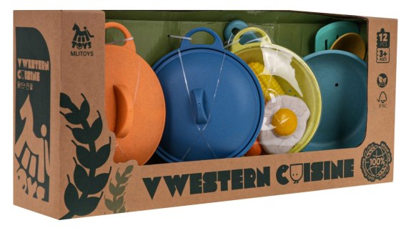 Zestaw garnków wykonanych z Bioplastiku, dla dziecka od 3-go roku życia. Zestaw składa się z 12 elementów w różnych kolorach. Mamy patelnię, dwa garnki z pokrywką, cedzak, łopatkę, łyżkę oraz atrapy produktów spożywczych takie jak jajko sadzone, nóżka z kurczaka, marchewka, kukurydza. Ten zestaw daje nieograniczone możliwości zabawy. Materiał, z którego wykonany jest zestaw, jest przyjazny dla dziecka i środowiska naturalnego. Funkcje zestawu: - wykonany z najlepszej jakości ekologicznych materiałów, - bezpieczny dla dzieci od 3-go roku życia, - różnorodność i bogactwo kolorów, - 12 elementów zestawu, - stymuluje zmysły dziecka. |