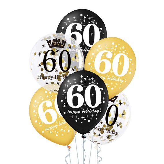 Zestaw 6 balonów lateksowych na 60 urodziny.