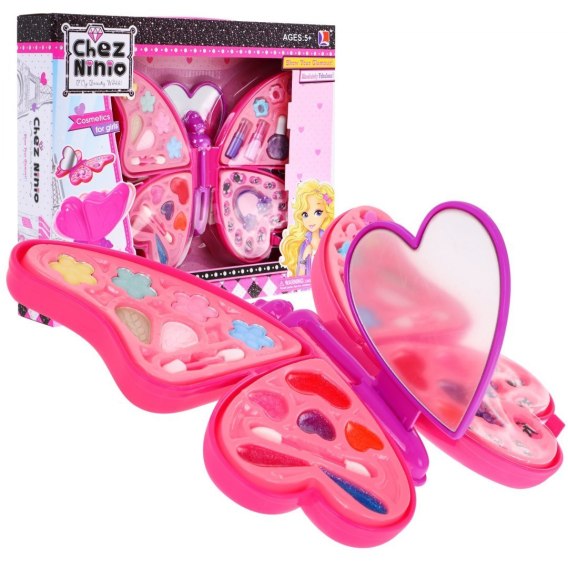 Niesamowity, bogato wyposażony zestaw kosmetyków w poręcznym zamykanym pudełku w kształcie motyla. W zestawie znajduje się wiele kosmetyków takich jak: cienie do powiek, pędzelki, błyszczyki, szminki, lakier do paznokci, spinki do włosów oraz tipsy i gumeczki do włosów. Pudełeczko z kosmetykami, po skończonej zabawie można zamknąć, nie zajmuje dużo miejsca. Zabawka jest odpowiednia dla dzieci od 5-go roku życia. |