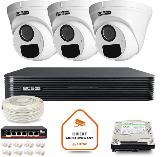 Zestaw monitoringu IP BCS Basic 3x Kamera BCS-B-EIP15FR3(2.0) Rejestrator z dyskiem 1TB