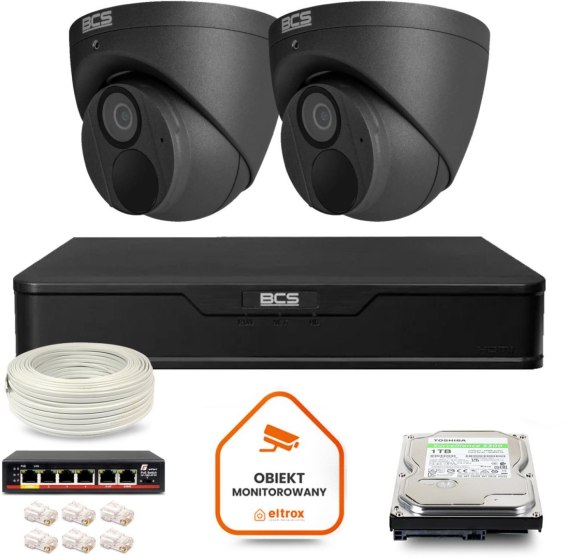 Zestaw monitoringu IP BCS Point 2x Kamera BCS-P-EIP28FWR3-Ai2-G Rejestrator z dyskiem