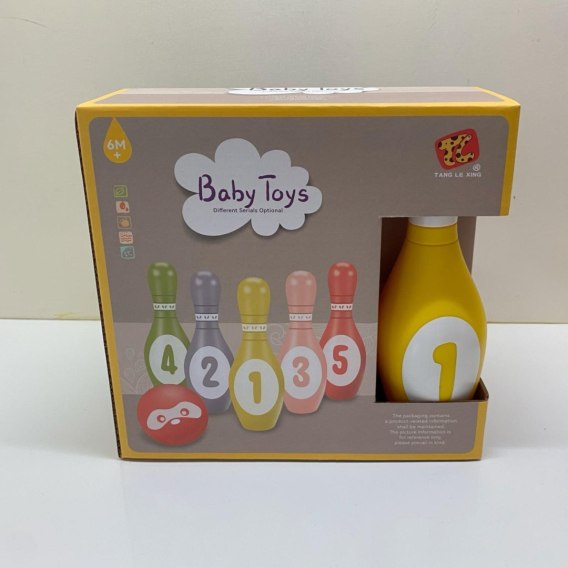 - piłka o średnicy ok. 8 cm - kręgle ok. 20,5 cm x 6,5 cm x 6 cm, - opakowanie ok. 21,5 cm x 15 cm x 20,5 cm. |